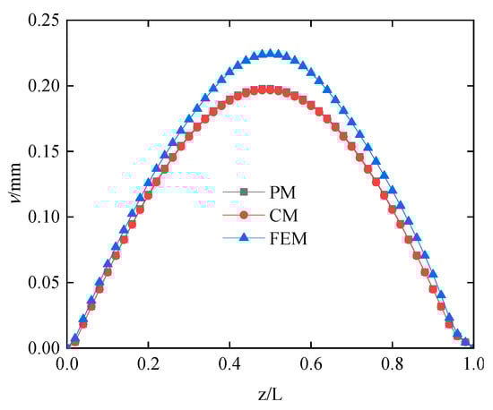 Figure 6 shows the mid-span axial stress curves of each slab. Obviously, the results obtained from the proposed method are closer to those obtained from the finite element method than those obtained from the conventional method. Figure 7 shows the deflection curve. The deflection curve obtained from the proposed method in this study closely aligns with the deflection curve resulting from the conventional method, with a negligible difference compared to the finite element deflection curve.