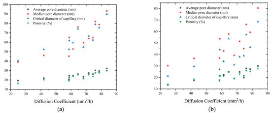 Relationship between concrete pore structure parameters and humidity diffusion coefficient: (a) C30; (b) C60.