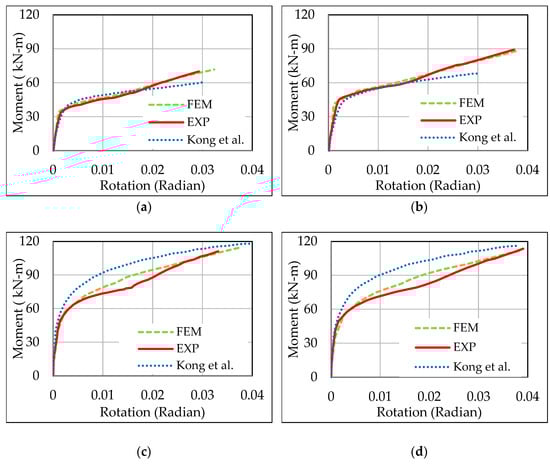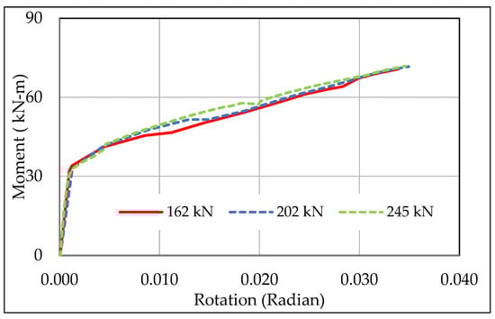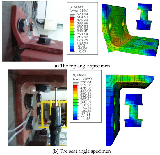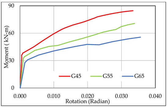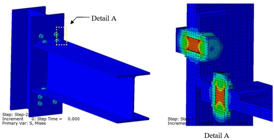 - The yielding of angles in the connections and the yielding around the bolt holes in the components occur in the early steps of the nonlinear range of the M–θ curve, while the bolts yield occurs in the later stages. When the yield strength of bolts decreases, a small drop in the ultimate moment value is observed in the final portion of the curve. However, if the bolt satisfies a sufficient yield strength, which is the crucial criteria recommended in the AISC 360-16 standard [21], any increase in bolt strength will not influence the M–θ curve.