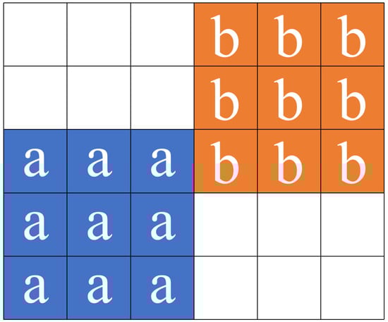 Two-dimensional illustration of a packing matrix containing two distinct particles. Each particle is described by a set of voxels identified by the id of the particle [].