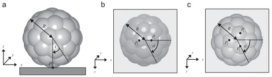 In addition to the aggregate modeling techniques mentioned above, another method combines simple basic particles to construct complex composite particles. The combination sphere method, proposed by Favier et al. [,], is currently the most common method in the combined particle method. It combines a specific number of spherical particles in an overlapping arrangement to form a composite particle.