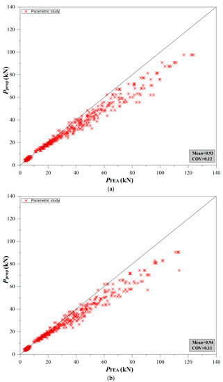Comparing the parametric study results (PFEA) with the strengths computed using existing design guidelines and newly proposed formulas (PAS/NZ S4600, PAS/NZS 1664.1, and Pprop).