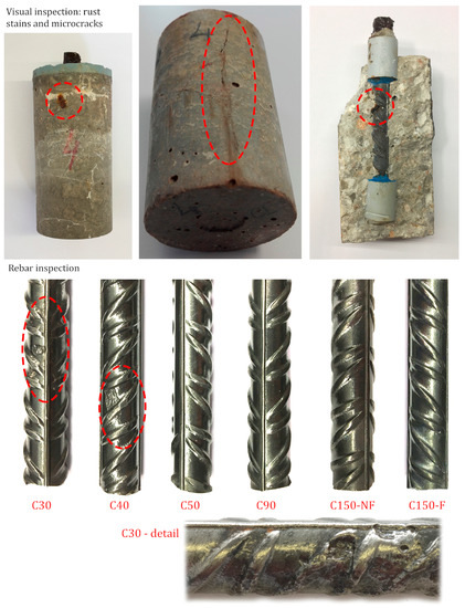 Today, second only to water, concrete is the most consumed material in the world [1], and is also the most used construction material worldwide [2,3]. At present, around 7.5 × 109 cubic meters of concrete are made each year [4]. Such mass consumption is due to its main advantages: its strength and mechanical properties, its versatility and adaptability [5], its abundant availability [6] and the low cost of raw materials [7]. Another property that distinguishes reinforced concrete from other building materials is its durability. This term refers to materials’ ability to withstand aggressive environmental actions, and to maintain performance well above a minimum acceptable level during its service life with no undue serviceability loss or the need for major repairs [8,9]. Among the different causes of reinforced concrete structures’ (RCS) premature damage, corrosion of reinforcement is the predominant and most crucial deteriorating mechanism [10], especially when RCS are located in marine environments [11,12,13,14]. This process gradually affects RCSs’ service life and their performance [15].