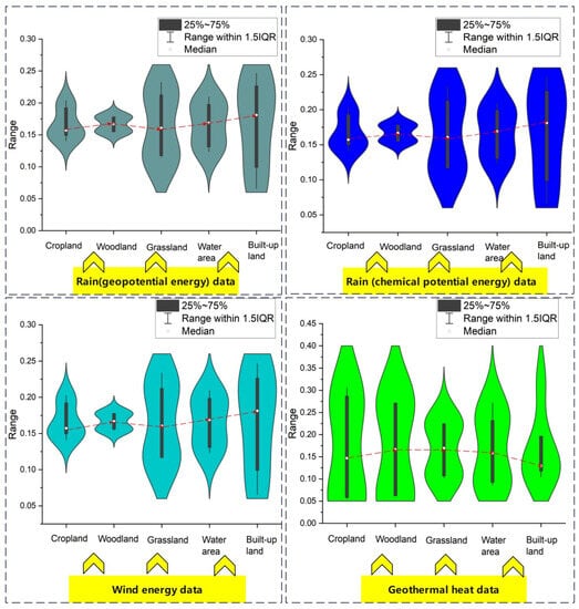 3.1.2. Renewable Emergy Calculation for Six Types of Plots