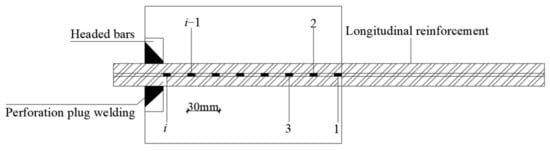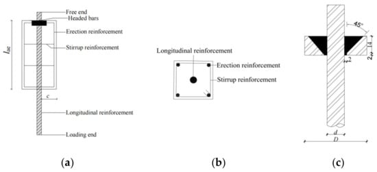 - A calculation method could be derived for the bond force in straight anchor sections at the yield moment for the reinforcement. A distributive relationship for the anchorage force between the bond force and the bearing pressure was obtained. This enabled the direct and effective consideration and selection of influencing factors such as the dimensions of the headed bars, embedded reinforcement length, and concrete strength grade. Consequently, reinforcement design with headed bars can shift from passive checking to active selection.
