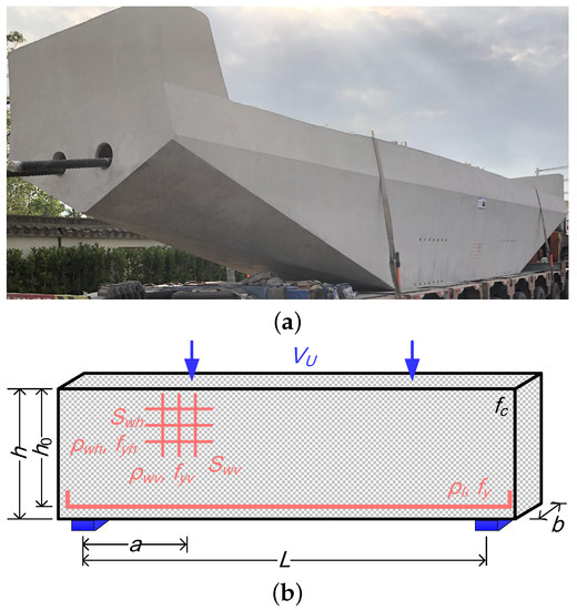 Currently, reinforced concrete (RC) buildings are the prevalent choice for constructing civil infrastructure all over the world. They will suffer from various load scenarios throughout their service life [1]. To maintain their safety, the accurate prediction of the various RC components’ capacities is significant [2]. Among various RC components, the prediction of the shear strength of an RC deep beam is one of the most-challenging tasks due to its sophisticated failure mechanism [3,4]. To predict an RC deep beam’s shear capacity, in the past few decades, plenty of experimental studies have been carried out to figure out its failure process [5,6,7]. It has been found that the classical plane section assumption is no longer satisfied in deep beams, which makes their failure mechanism very complicated.