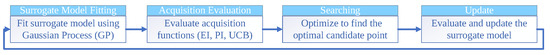 3. Searching: In this step, the optimal point of the next candidate is found according to the acquisition function. This usually involves an optimization process aimed at finding input values that maximize the value of the acquisition function. This point may be a minimum value of the objective function, or it may be in an area of greater uncertainty, thereby achieving a balance between exploration and utilization.