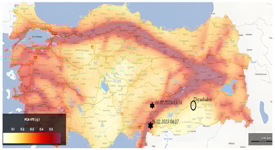 Figure 1. On the other hand, the current earthquake hazard map of Türkiye and the location of Diyarbakır province’s Türkiye Earthquake Hazard Maps Interactive Web Application (TEHMIWA) [