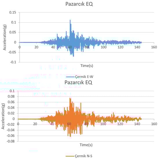 epi = 66.68)) recorded the highest acceleration value of 0.63 g in the north–south direction. Meanwhile, the Çermik station (R