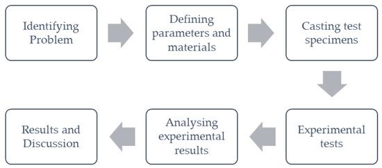 An experimental investigation was conducted on normal non-jacketed concrete column stubs and wearable prefabricated ferrocement jacketed concrete column stubs in order to determine the effect of PFJ in comparison with the non-jacketed specimens in terms of bearing capacity, axial load, and lateral load capacity. For conducting the experiment, ten column specimens with dimensions of 150 mm × 150 mm × 300 mm, and eight precast ferrocement jackets with 25 mm thickness, have been constructed, four being L-shaped and the other four as U-shaped. Furthermore, the jackets were connected using 5 mm thick steel spokes and tested for load-bearing capacity, deflection, and stress capacity. Among all the tested specimens, two specimens were non-jacketed and denoted as control specimens. Moreover, among all the jacketed specimens, four were loaded until the first crack appeared before conducting the experiment, to represent damaged concrete specimens. Figure 1 illustrates a graphical research plan of the methodology used in this investigation.