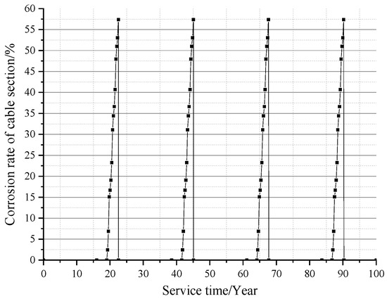 Corrosion reduces the cable section and also has a remarkable effect on fatigue resistance and ductility of cable. The decreasing rate of the corroded cable section can be defined as: