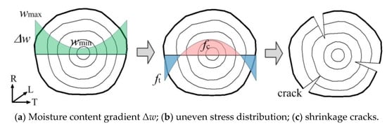- Wang, H.H.; Youngs, R.L. Drying stress and check development in the wood of two oaks. IAWA J. 1996, 17, 15–30. [Google Scholar] [CrossRef]