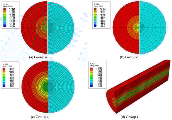 - The theoretical calculation of the humidity stress distribution proposed in this paper is in good agreement with the finite element results. Therefore, the expression of humidity stress is accurate and can provide a reliable basis for subsequent calculations.