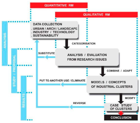 New models used a “rediscovered” creative method called SCAMPER, based on team brainstorming. The name is an acronym from active verbs: Substitute, Combine, Adapt, Modify, Put to another use, Eliminate, Reverse, [25,26]. The created models, concepts, and theories of expected industrial territory development can be further compared and verified as alternatives to concrete case studies and with the interdisciplinary cooperation of experts.