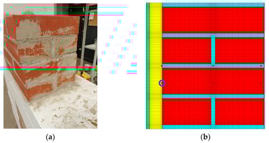 The setup consisted of a test wall built from EPS (Figure 2). The wall had nine samples of single-leaf masonry wall (40 cm wide, 30 cm high, 25 cm deep each). Two test walls were built—each for one test round.