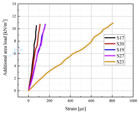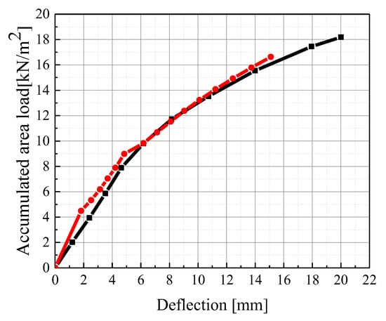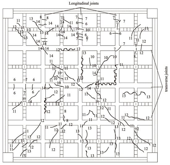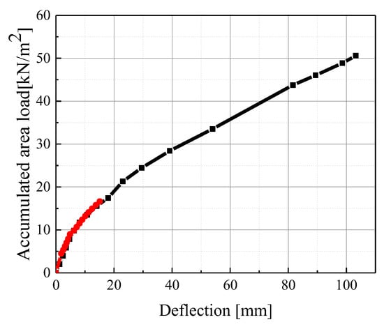 - The crack mainly concentrated on the joint position and the cracks under 16.63 kN/m2 turned out to be “X-shaped”. At this point, the strain of the longitudinal load-bearing steel bars had not yet yielded, proving that the new floor is of sufficient safety redundancy.