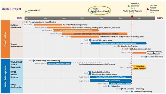 Chicago/Turabian StyleScanlon, Molly M., James L. Gordon, and Kelly A. Reynolds. 2023. "Building Water Quality Commissioning in Healthcare Settings: Reducing Legionella and Water Contaminants Utilizing a Construction Scheduling Method" Buildings 13, no. 10: 2533. https://doi.org/10.3390/buildings13102533