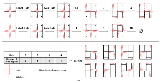 - Adjustment rules—S3. Based on T3, the samples should be cut in quarters and the parts with the labeled homestead should be retained, as shown in Figure 14h.