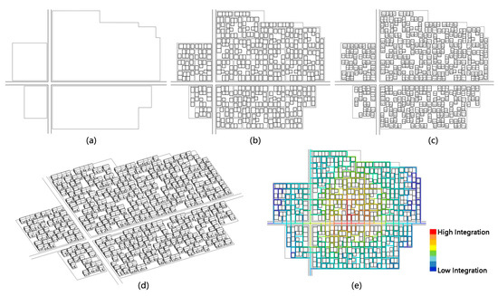 - Jiang, B.; Claramunt, C. Integration of space syntax into GIS: New perspectives for urban morphology. Trans. GIS. 2002, 6, 295–309. [Google Scholar] [CrossRef]
