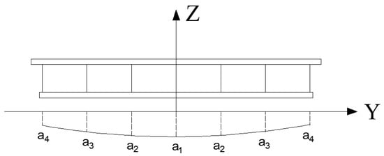 Then, the bending moment of inertia of the i–th section is I (x direction), and the bending strain energy of the i–th beam along the bridge is as follows: