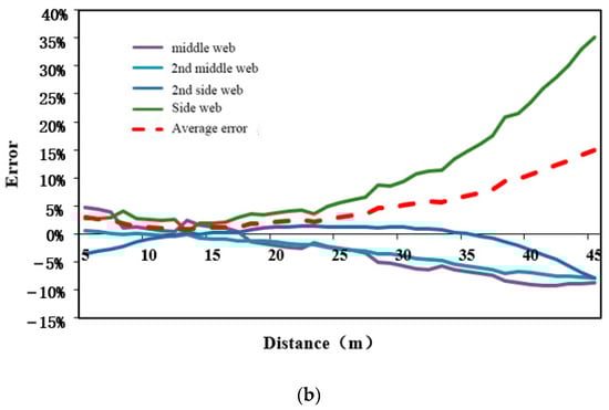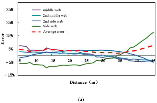In the formula, , , , and are the errors of the side web, the secondary web, the secondary web, and the middle web, respectively. The reason for adding the absolute value is as follows: if the absolute value number is not added, the positive and negative errors of the webs may cancel each other out, making the calculated average error less than the actual average error.