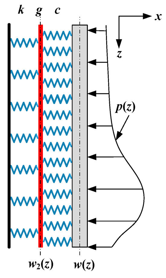 where w1(z) and w2(z) are the deformation of the spring and shear layer of the soil on the right side. Supposing that the stress of the pile and shear layer on the left side, respectively, are expressed as