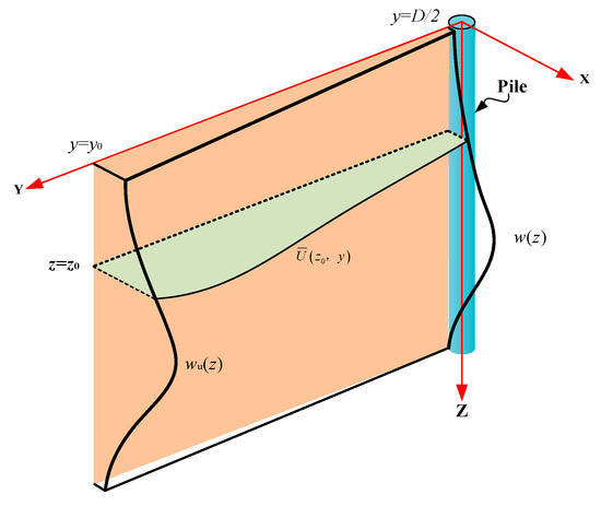 As shown in Figure 4, wu(z) is the particular solution of Equation (21) when y = y0. The plane of y = y0 is outside the effective influence range of the pile foundation. Hence, we can calculate Equation (20) as