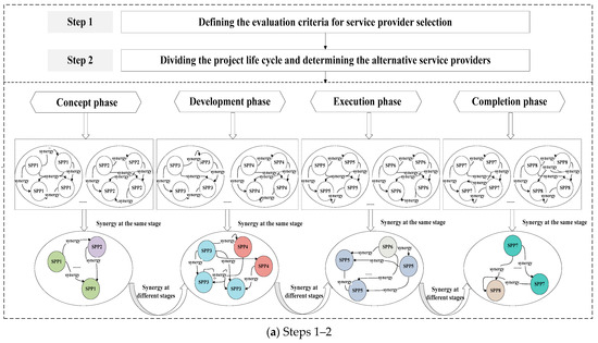 To sum up, the above-reviewed studies mainly considered the synergy effect among the served subjects, rather than among the service providers. This is inadequate to provide an effective reference for the SPPS considering the synergy effect among service providers. Being aware of the importance of the synergy effect among service providers for SPPS results in project management, the authors of this study take it into account and propose an SPPS model across the project life cycle.
