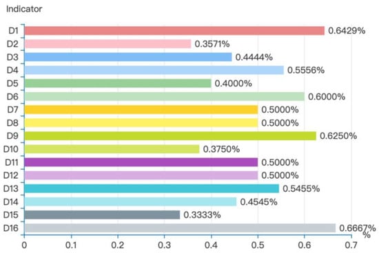 Since CR < 0.1, it meets the consistency test criterion, indicating that the judgment matrix is constructed reasonably. The same method is applied to calculate the weights of the remaining key indicators and perform consistency checks. The specific results are shown in Table 4, Table 5 and Table 6.