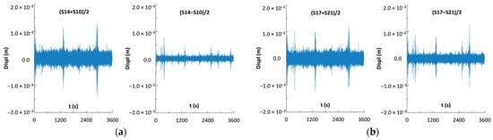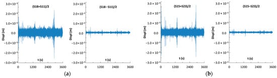 Semi-sum and semi-difference time histories of a couple of sensors: (a) S14−S10 and (b) S17–S21.