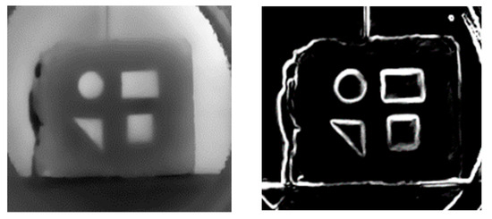 The filtered polarization thermal image of hollowing defects is enhanced by a mixed processing of Laplace sharpening and histogram equalization. Figure 8 shows the mixed enhancement processing result of the polarization thermal image. After adaptive bilateral filtering processing, the smaller noises in the image are removed well while preserving the internal defect edge information of the building facade. Using a mixed process of image sharpening and histogram equalization, the edge contours of the hollowing defects become clearer and the differences between intact areas and defective areas become larger in gray-level, so that the overall contrast of the polarization thermal image is improved without new noise generation.