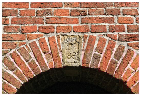 - Vincentz, F. Schlussstein von 1788 in einem Torbogen des Wymeerer Glockenturms. Available online: https://commons.m.wikimedia.org/wiki/File:Bunde_Wymeer_-_Kirchstra%C3%9Fe_-_Glockenturm_07_ies.jpg (accessed on 3 September 2023).