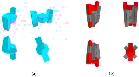 In this section, the blocks that are the focus of this paper are presented and analyzed. First, the different blocks designed by combining various regular prisms are introduced, and their corresponding assemblies are constructed. Furthermore, an investigation is conducted to determine whether the interlocking property is upheld for these assemblies. This assessment is carried out using the interlocking test proposed in ref. [] and a modified version of this test.