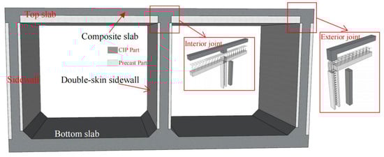 - Based on its capability to achieve comparable hysteretic performance and structure integrity to CIP structures, the precast joints, comprising composite concrete top slab and double-skin composite concrete sidewall with reserved rebar, can be designed and analyzed following the principles and models employed for CIP structures.
