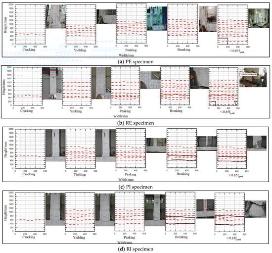 Figure 8 shows the crack propagation diagram of the specimens. From Figure 8, it can be observed that: