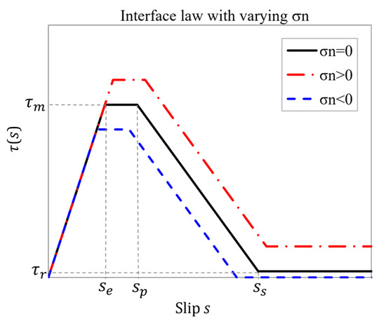 The multi-linear interface bond-slip law and variations depending on the interface’s normal stress .