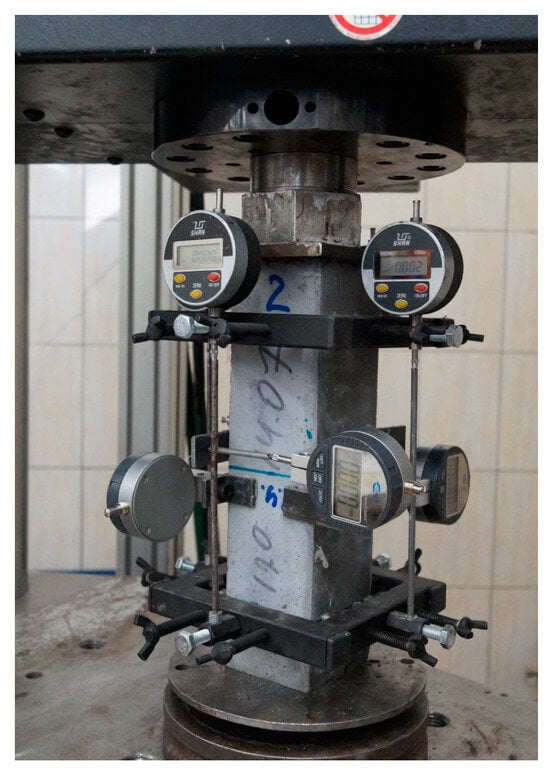 61], the results of tests of 102 UHPC compositions with compressive strength in the range of 80–200 MPa are presented, where no correlation between strength and Poisson’s ratio was found. The arithmetic mean value was 0.14 ± 0.029. The authors of the paper proposed to use the value of 0.15, which is 33% lower than the results obtained in this work.