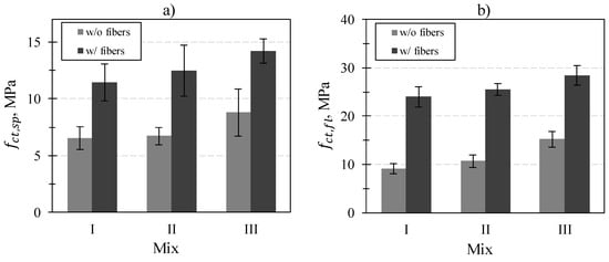 The splitting tensile strength of each composition was determined as the arithmetic mean of the results of 6 parallel tests.