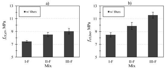 , was 8.49, 9.87 and 11.55 MPa for compositions I, II and III, respectively. The post-cracking tensile strength of fiber reinforced concrete depends on a number of factors and is determined by the following equation [