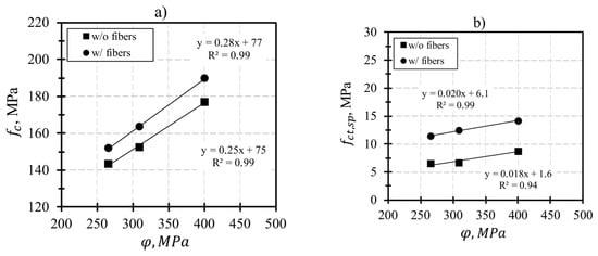 a in the equation practically does not change, resulting in a series of parallel straight lines. This fact allows us to determine the properties of UHPC/UHPFRC with any other volume content of corrugated steel fiber by the following equation: