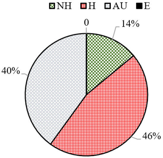 A separate analysis was carried out to check current knowledge about modular construction concerning different experiences and job categories. Table 9 shows the understanding of each group with a defined experience range of 72 participants. For easy reference, notations were assigned to the respondents from various ranges of experience. The notations are also given in Table 9. It can be seen that only about 6% of participants from LF belong to the knowledge category NH, while nearly 48% belong to category H and the remaining 45% to AU; for the group FT, nearly 27% belong to category NH, while 41% belong to H. The NH%, relative to the other knowledge fields, is the highest in the experience group FT. When considering the job category, SE/PE and C&DE were considered, and all other job categories were considered as one group due to needing more responses. Table 10 shows the analysis of the extracted data from 72 participants. It is evident that nearly 22% of SE/PE belongs to the category NH and 48% to category H, while the remainder belongs to AU. Regarding C&D, only about 13% belongs to NH, 58% to H, and 29% to AU. Those who have yet to hear about the concept are site engineers or planning engineers. Moreover, 13% of the respondents with an adequate understanding of modular construction are site or planning engineers, and 11% are architects.