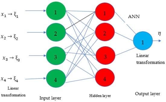 In the network, are cement, micro-silica, nano-silica, and xanthan gum; due to the constant amount of water, we have not included this in the network. To ensure consistency, all input and output data in the artificial neural network (ANN) need to be normalized within the range of 0 to 1. This normalization process involves applying a linear transformation. Specifically, each variable is subtracted by its minimum value and divided by the range (maximum value minus minimum value) of that variable. By using this linear transformation, all variables are scaled proportionally within the desired range [].