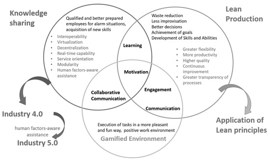 All studies in Table A1a (Appendix A) speak of knowledge acquisition and sharing, aiming to implement Industry 4.0 through gamified training and using social networks to facilitate communication. The new knowledge can lead the worker to achieve analytical, creative, and innovative skills, and gamification can promote social skills for teamwork, networking, and collaboration, improving communication between participants.