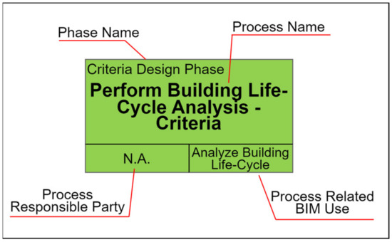 Single activity of the BIM process map, the perform building life-cycle analysis criteria process is shown as an example.