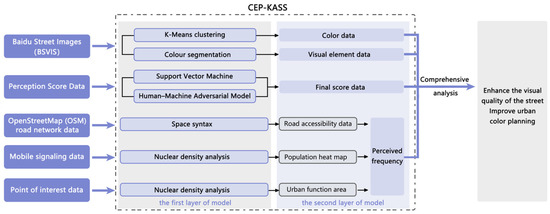 Although this study explores color perception in urban street environments, there are some shortcomings that warrant further discussion in future work. Firstly, this study selected a single research area and employed the proposed CEP-KASS framework to investigate color perception in urban street environments. In reality, as long as there is a sufficient amount of street-view image data and the city reaches a certain scale, this framework can be applied to different cities, and by comparing multiple cities of the same level, more universal color rules can be elucidated. Additionally, this study did not provide multi-level explanations for the formation of the perceptual results of street environment colors. Future research could consider incorporating eye-tracking and visual attention simulation experiments, capturing participants’ eye movement paths precisely when observing urban scenes, and predicting and simulating people’s attention distribution while viewing urban scenes. This would reveal which spaces within the urban scene are noticed first when color environments impact perception, aiding researchers in the fields of urban science and anthropology to more intuitively understand the formation of perceptual outcomes caused by which visual elements and corresponding colors. Moving forward, we will consider more factors, increase the sample of cities, and combine some intuitive experiments to discuss urban street color planning.