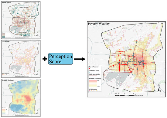Figure 7. The study discovered that within the inner ring of Xuzhou, streets with high perception frequency and high accessibility tend to score higher in the danger–safe dimension of color environment perception. Previous research also confirms that street accessibility often plays a critical role in creating places and enhancing the quality of life, providing a set of urban street space quality measurement standards based on accessibility (Ye et al., 2019).