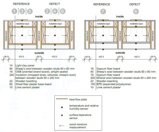 - Zirkelbach, D.; Tieben, J.; Tanaka, E.; Pfabigan, N.; Andresen, N.; Bachinger, J.; Nusser, B. ThermNat—Building Components with Insulation from Sustainable Raw Materials: Focus (hygro-)thermal Conditions; Holzforschung Austria, Fraunhofer-Institut für Bauphysik: Wien, Austria; Holzkirchen/Dresden, Germany, 2023. [Google Scholar]