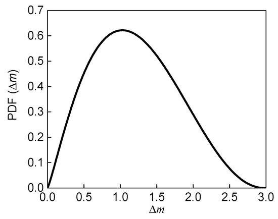 where is the probability density function (PDF) of the selected beta distribution, as shown in Figure 1, in which is the beta function for the corresponding elements 2.2 and 2.3. With the distribution of Δm determined, the magnitude of the largest aftershock can be obtained by subtracting Δm from the mainshock magnitude.