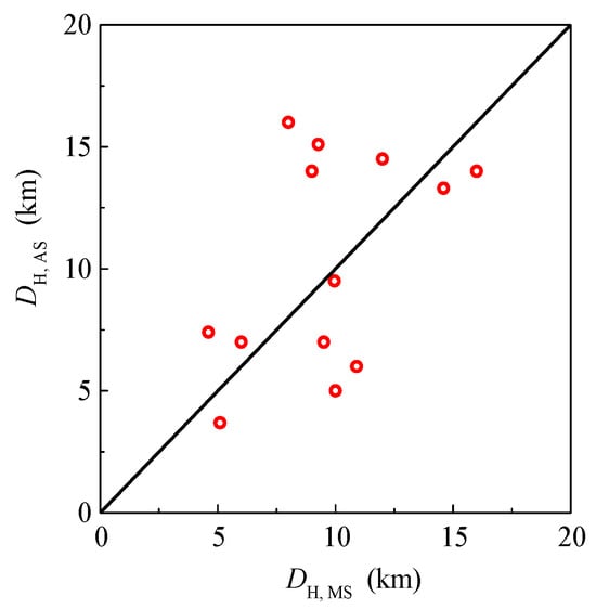 The hypocenter depths of the selected MS–AS seismic sequences.