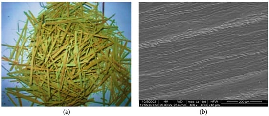 Date palm fibers: (a) cut fibers and (b) SEM observation.